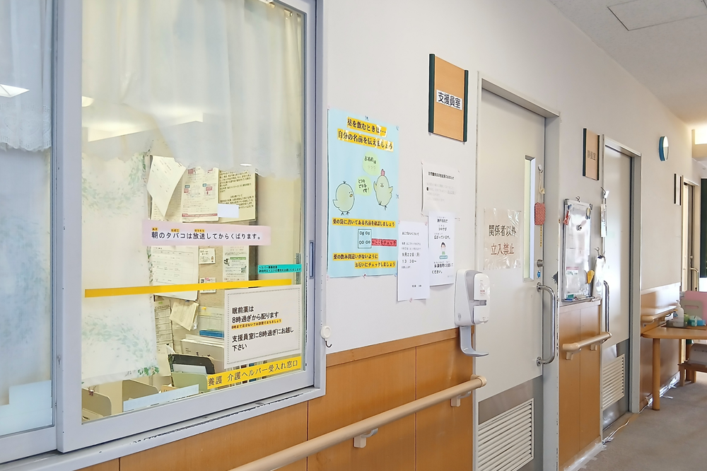 - 医務室では、嘱託医が月に3回来所し、看護職員が日々の健康チェックや、健康相談、服薬管理、感染症対策などを行っています。