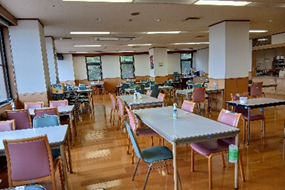 - 食事は一日のペースを作る上でとても大切です。管理栄養士が栄養バランスを考え、家庭的で温かい食事が提供できるよう工夫しています。(老人ホームとの共同厨房)。